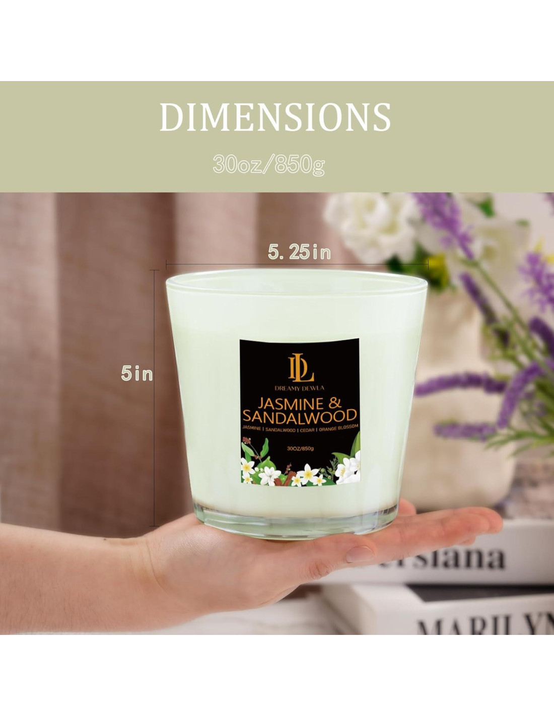 - Cera de Soja Natural: Una buena vela no solo debe tener un aroma agradable, sino también quemar limpiamente. Hechas de cera de soja premium y aceites esenciales, las velas aromáticas de Jazmín y Sándalo queman limpias y sin humo, brindándote horas de placer aromático sin ser demasiado estimulantes.