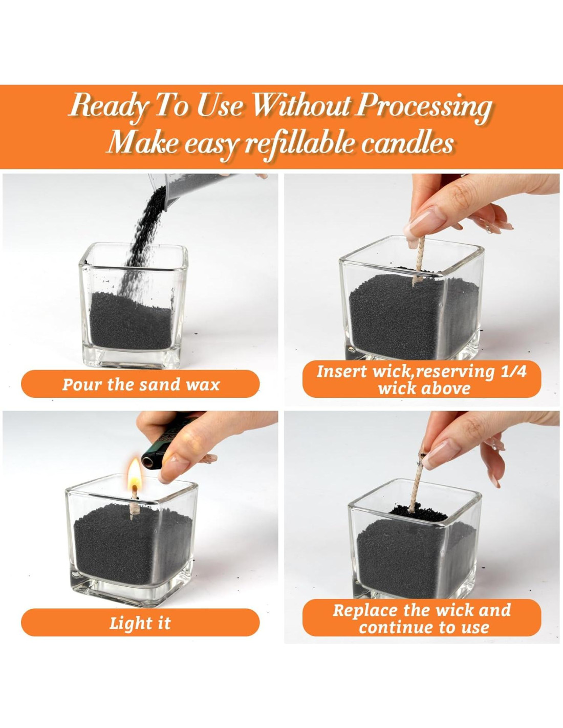 - Creatividad Sin Fin en Base Negra: ¡Desata tu arte! Esta arena de velas perladas y mechas es ideal para pintura de cera o pilares clásicos. Esta cera de arena para hacer velas logra un aspecto único sin derretirse. Y se personaliza fácilmente. No te preocupes, la mecha se mantendrá segura mientras la vela de arena se quema.