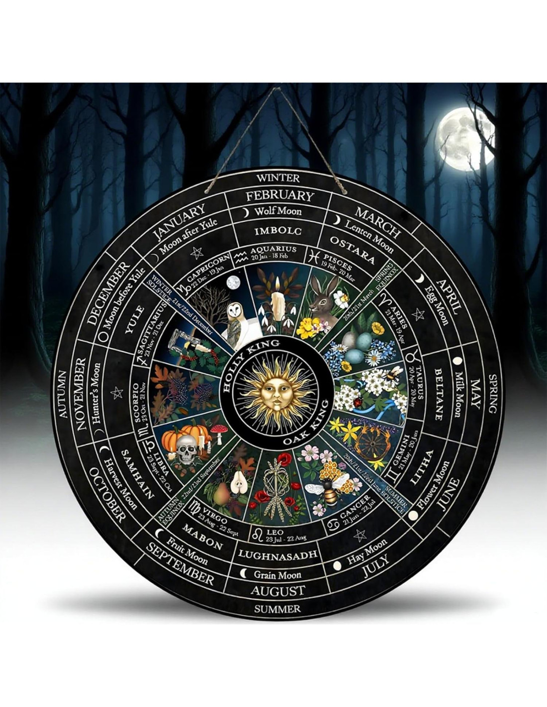 Cartel de Rueda del Año de Madera, Cartel Pagano de Sabbats, Fiestas Wiccanas, Calendario Wicca, Altar de Yule, Cartel Celestial, Decoración de Halloween, Decoración de Navidad
