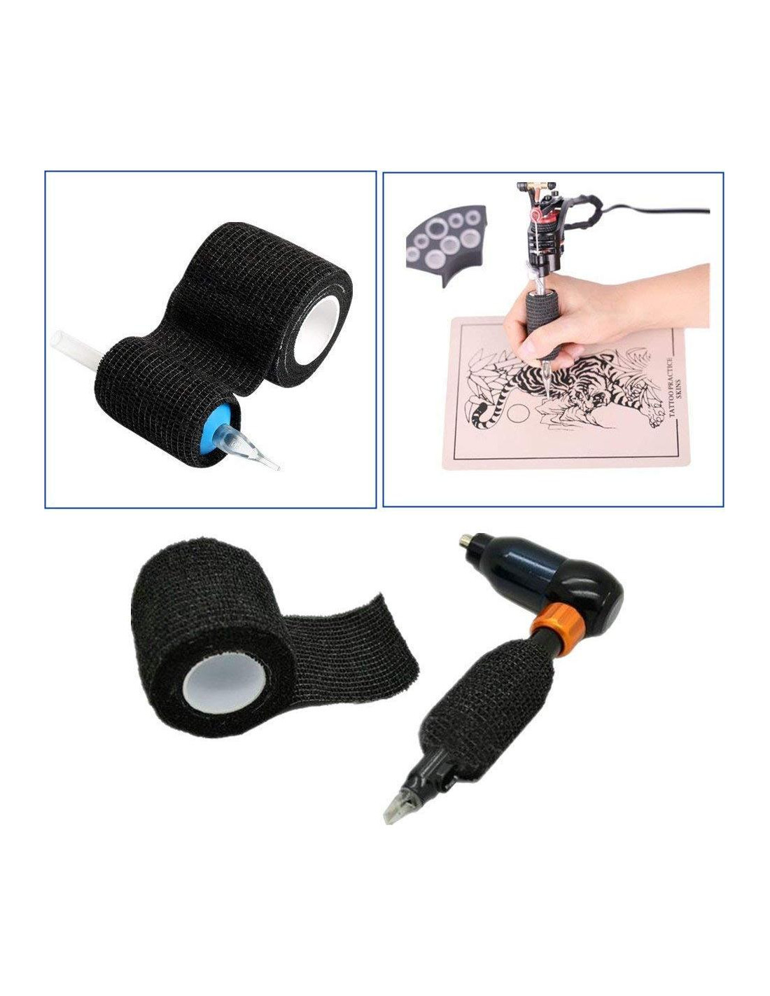 - ALTA RESISTENCIA AL AGUA - Nuestra cinta de venda no tejida no se afloja fácilmente por el sudor o el agua. Nuestra cubierta de agarre para tatuajes se puede envolver alrededor del mango para evitar que los artistas del tatuaje se resbalen en el trabajo.