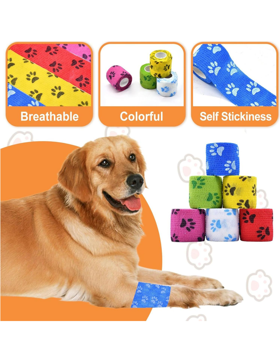 - Cantidad al por Mayor - Este conjunto incluye seis rollos, cada uno mide 2 pulgadas (5,08 cm) por 5 yardas (4,57 m), ofreciendo un excelente valor. Asegúrate de tener suficiente para cuidar las lesiones o necesidades de salud de tu mascota.