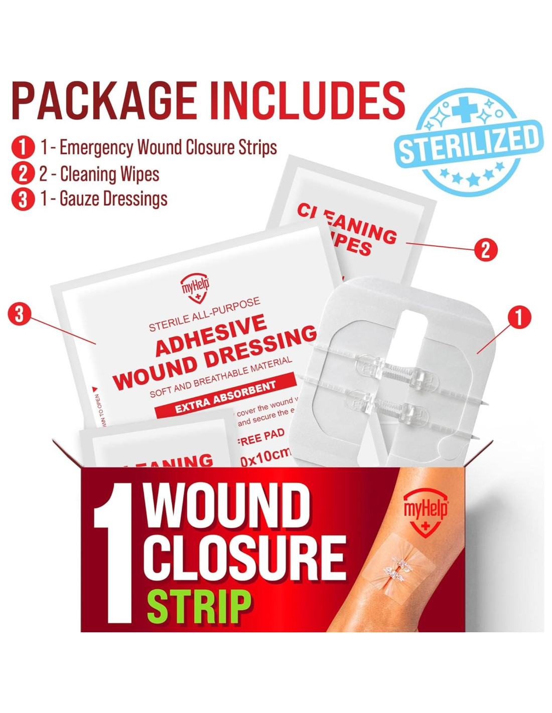 - RÁPIDO Y SIN DOLOR - Las tiras de cierre de heridas de emergencia MyHelp mantienen la herida cerrada proporcionándole un soporte fuerte y seguro. Los vendajes mariposa para el cierre de heridas ayudan a sanar cortes pequeños en días y protegen la herida de la exposición.