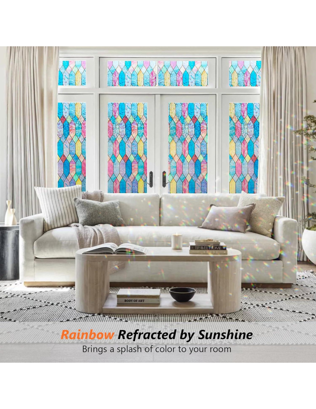 - Patrones Coloridos y Efecto Arcoíris: La película de vidrio de colores Kromapolis presenta patrones de rejilla coloridos especiales y un impresionante efecto arcoíris, que puede aportar tonos caleidoscópicos a tu espacio cuando la luz del sol pasa, una alternativa al vidrio texturizado costoso