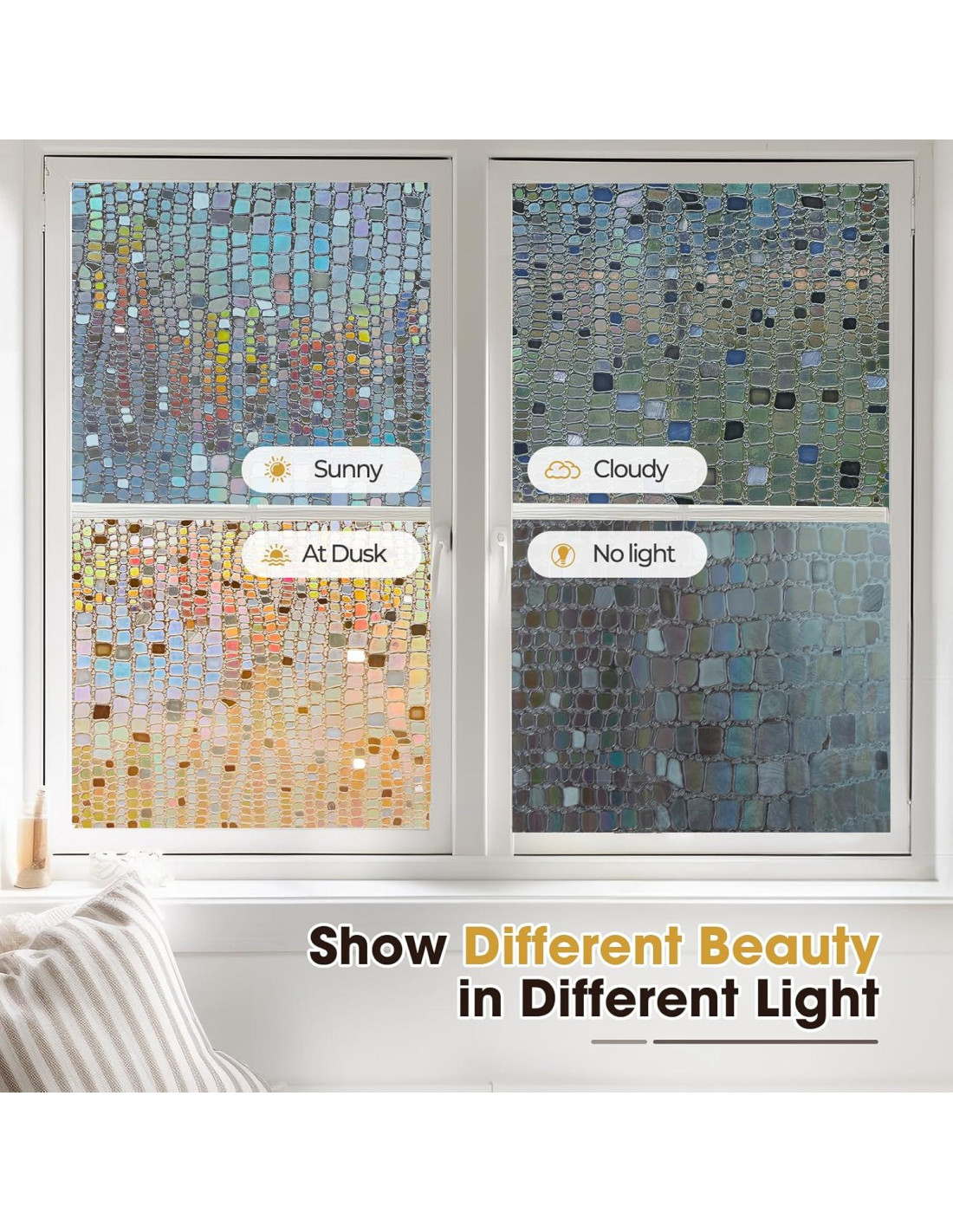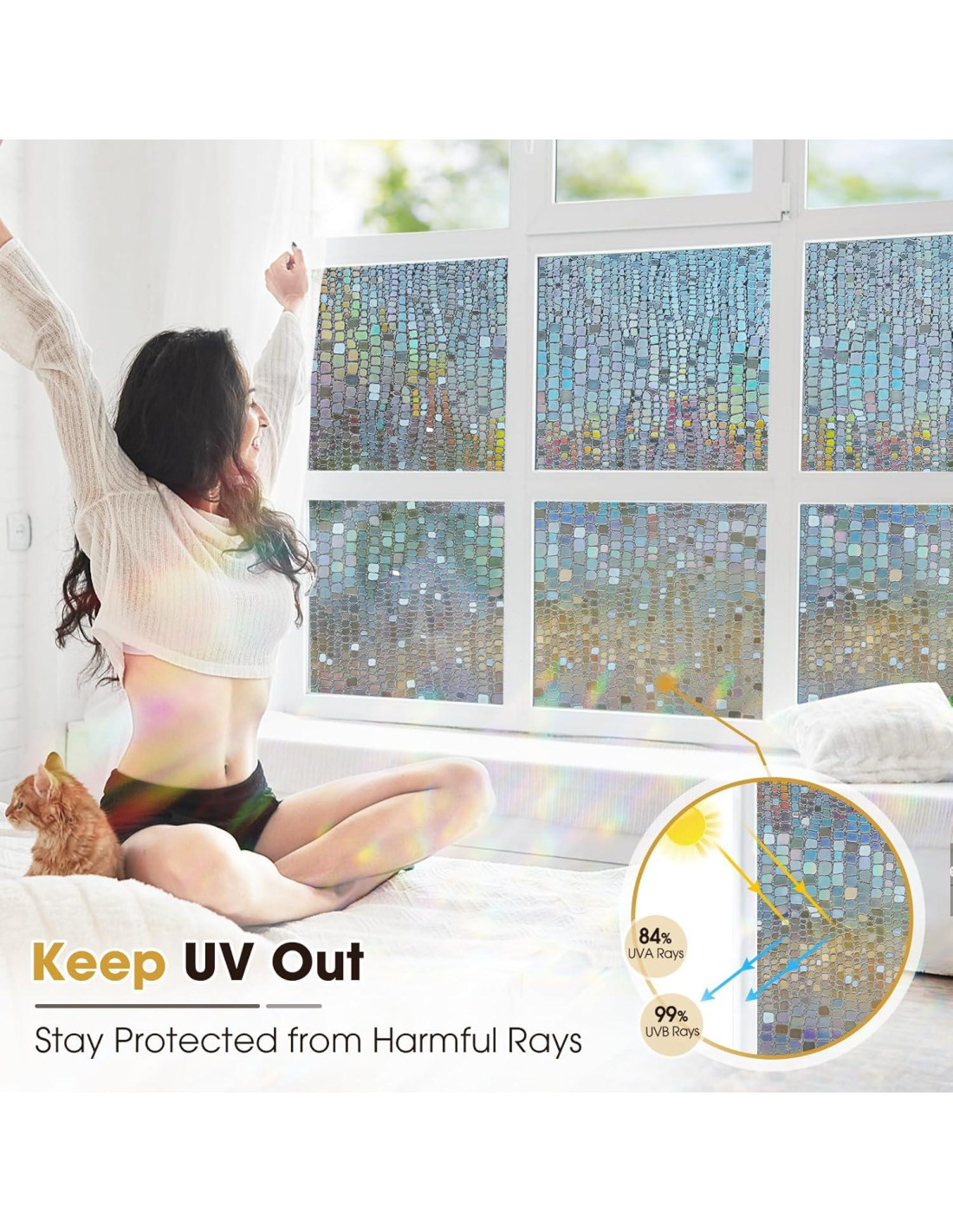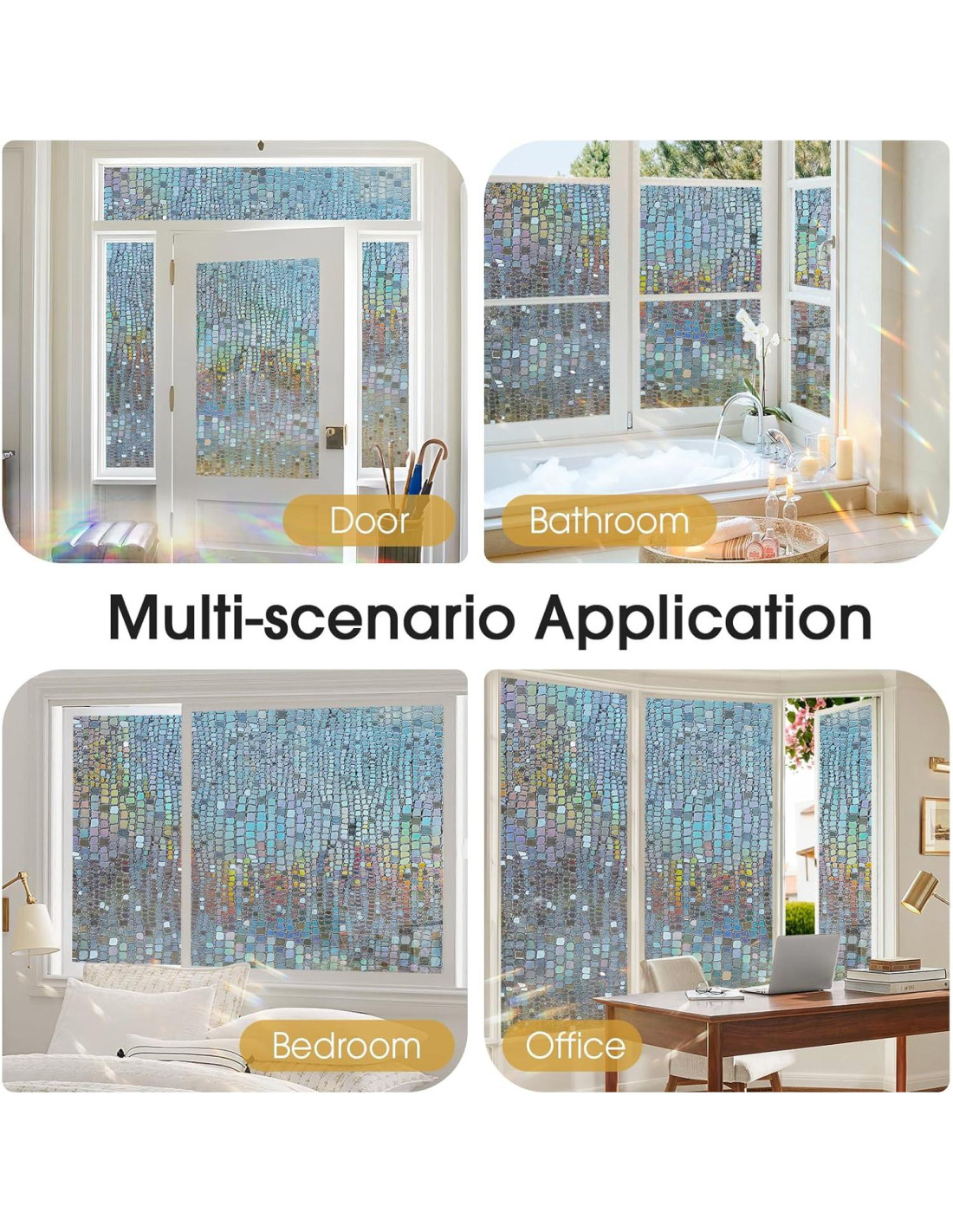 - Semi-privacidad y Deterra el Ladrido de Perros: Permite la entrada de luz natural mientras protege la privacidad. Esta calcomanía holográfica para ventanas evita que los perros se lancen hacia la ventana o ladren al ver a los transeúntes.