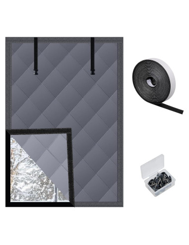 Especificación: Color: Gris Material: Oxford y algodón Tamaño: 71x99cm El paquete incluye: 1x Cubierta de aislamiento de ventana 1 x Cinta de gancho y bucle 20 x Clavos Consejo útil: El paquete viene con 20 clavos. Puedes usar estos clavos para refuerzo y hacer que tu cortina térmica se fije más estable en la ventana.