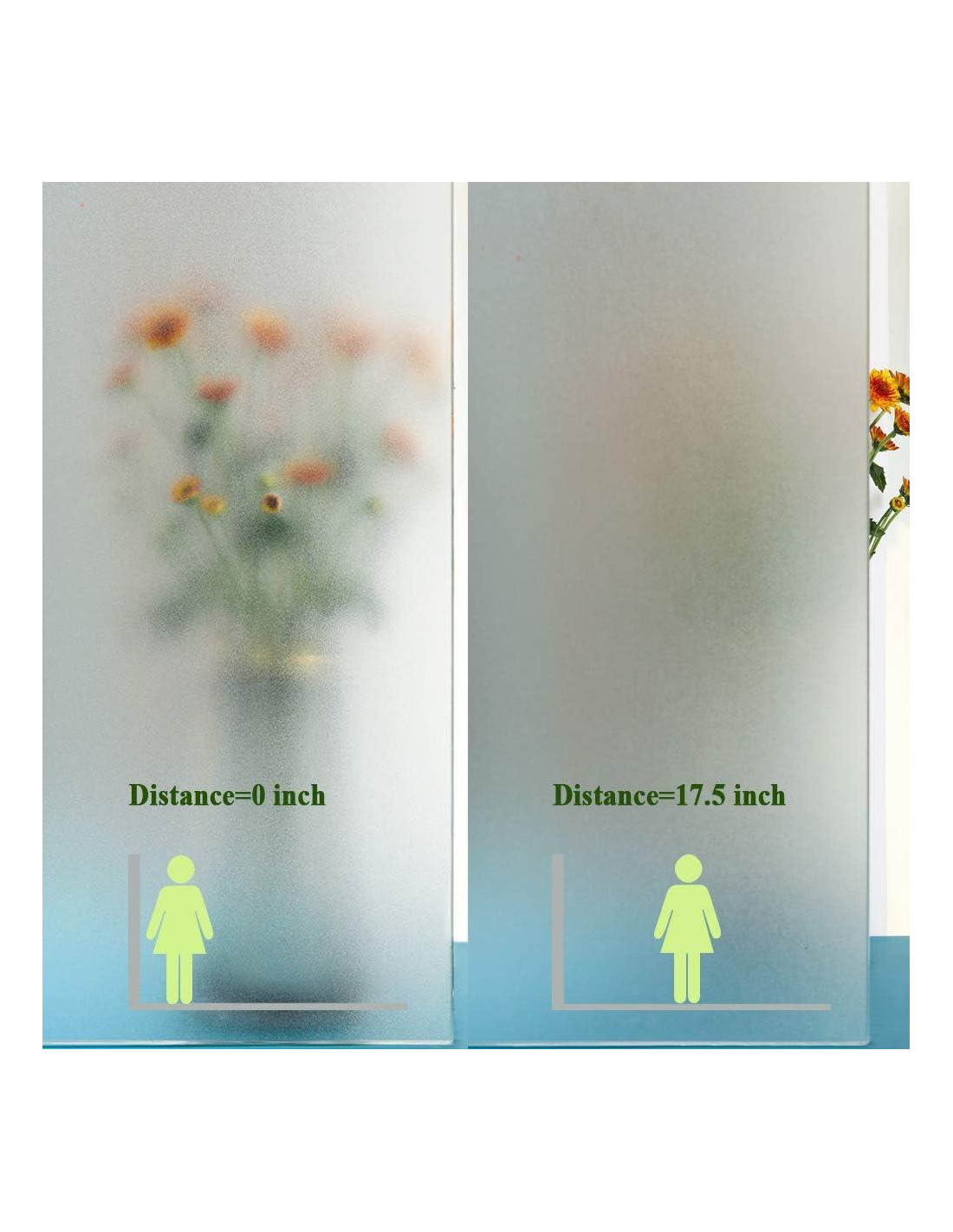 - Alta Protección de Privacidad--Proporciona privacidad y permite la entrada de luz. Ofrece alta privacidad sin sacrificar la luz, no necesitas preocuparte por ser espiado por transeúntes y vecinos. Aplicable para la mayoría de los casos incluso para el baño, la mejor opción para la privacidad en el hogar y la oficina.
