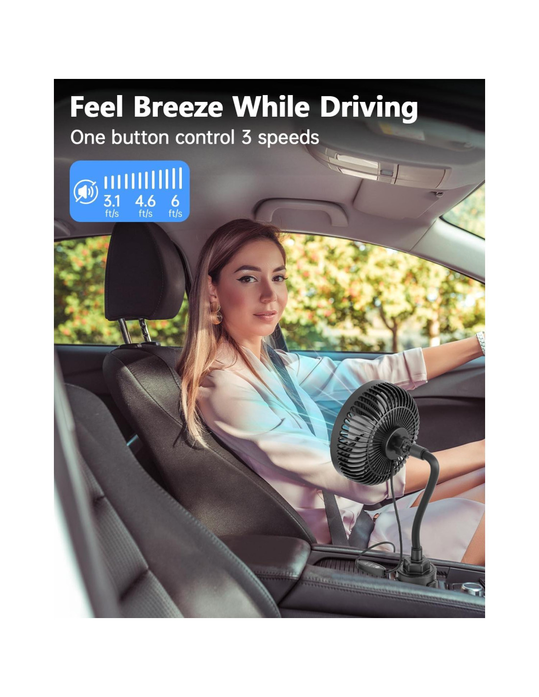 - [Montado en portavasos redondo] - Gira el extensor de base ajustable para adaptarse a varios portavasos redondos (de 6.9 cm a 9.7 cm de diámetro), es fácil de instalar, y un buen agarre asegura que se mantenga firmemente. A diferencia de los ventiladores de coche adhesivos, este gadget de coche es más estable y no deja marcas en tu vehículo