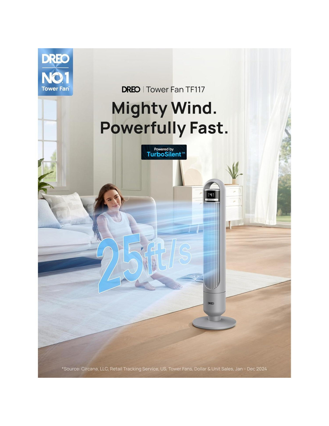 - Flujo de aire potente para un rápido confort: Con una velocidad de aire de 25ft/s (7.62 m/s), este ventilador de torre sopla aire frío, proporcionando brisas refrescantes para enfriar rápidamente tu espacio. Perfecto para días calurosos de verano o áreas interiores sofocantes.