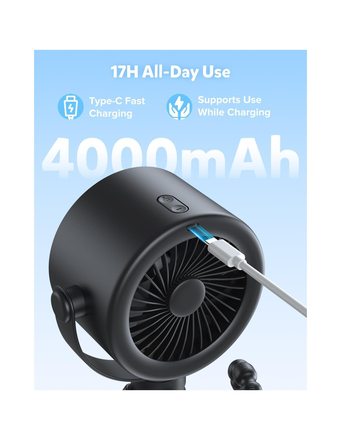 - 17H de Enfriamiento y Carga Rápida: ¡Olvídate de la ansiedad por la batería! La batería recargable mejorada de 4000mAh en este ventilador para cochecito proporciona hasta 17 horas de enfriamiento, la carga rápida Type-C restaura la energía en solo 3 horas y funciona con cualquier fuente de alimentación USB, ideal para viajes a Disney, viajes en avión, viajes por carretera, días de playa y uso diario, asegurando comodidad ininterrumpida en cualquier momento y lugar.