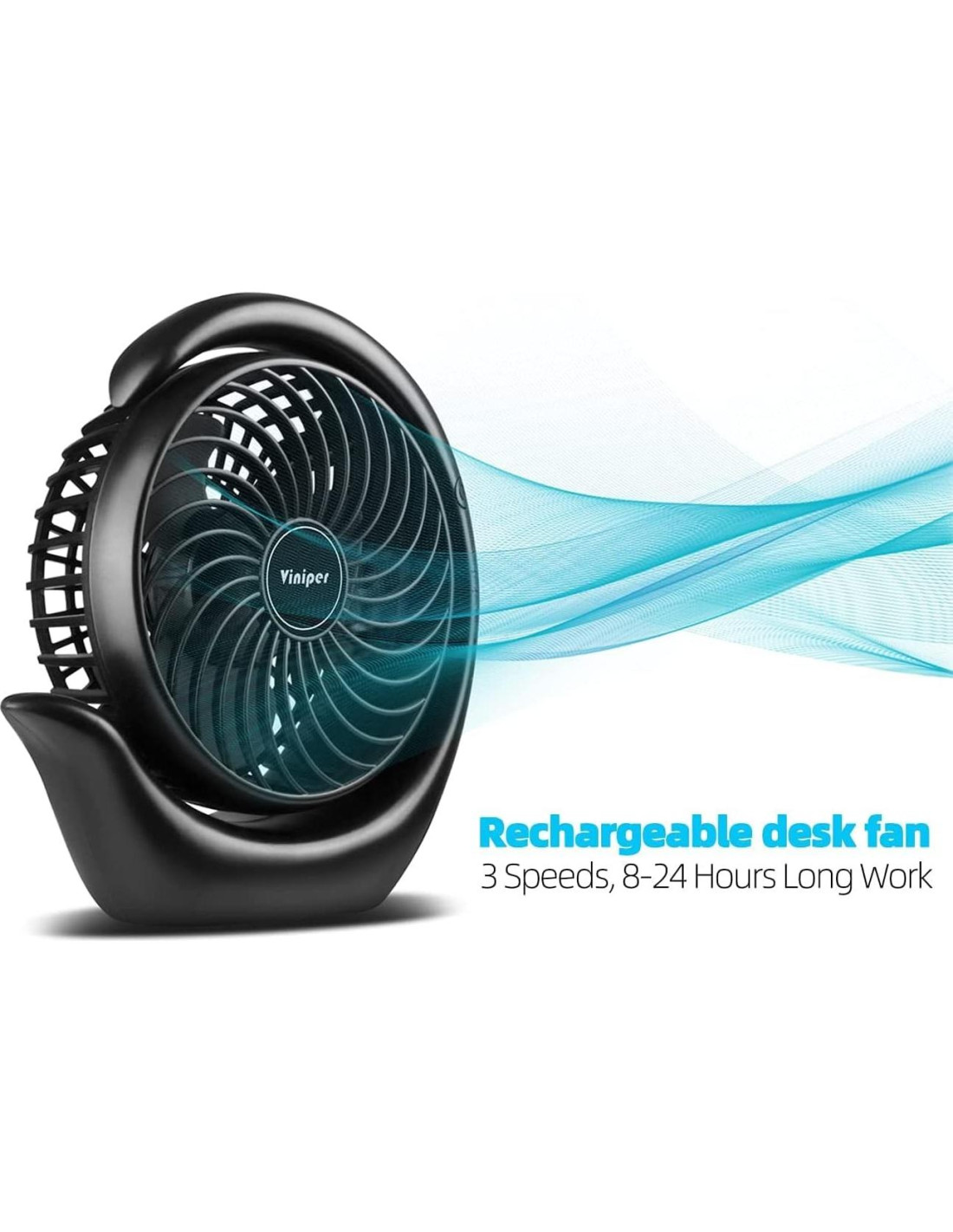 - [ Horas de Trabajo Más Largas, Funciona con Batería y Alimentación USB ] Buen ayudante para la temporada de huracanes. El ventilador de escritorio pequeño recargable de la marca viniper 2022 funciona con 3600mA (Integrado) y puede operar durante 8-24 horas después de una carga completa. Al mismo tiempo, la optimización bidireccional de la placa base y la batería hace que el ventilador recargable por USB viniper tenga horas de trabajo más largas. También se puede usar a través del puerto USB de su PC/computadora/cargador USB u otros dispositivos USB.