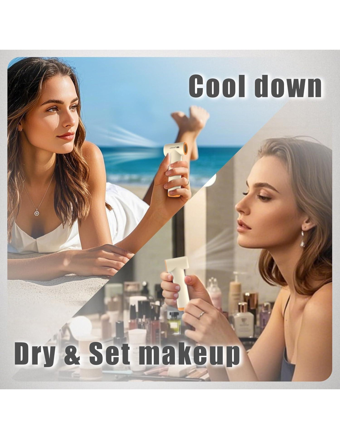 - [Tu Compañero de Verano en Movimiento] Sosténlo en tu mano, colócalo en tu escritorio o toma selfies con su diseño digno de Instagram. Desde festivales hasta desplazamientos, este ventilador está listo para viajar y siempre a tu lado.