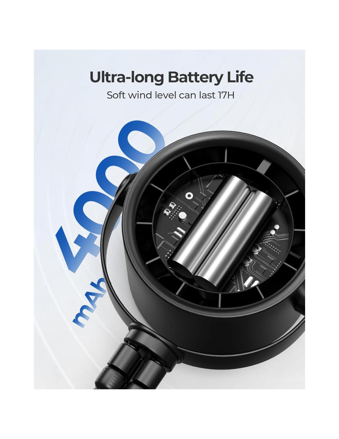 - Enfriamiento Portátil de Larga Duración: Con una batería recargable de 4000mAh, este ventilador alimentado por batería te mantiene fresco durante 2.5 a 17 horas. Su carga USB lo convierte en un ventilador portátil perfecto: solo conéctalo a tu laptop, banco de energía o cargador de coche y listo