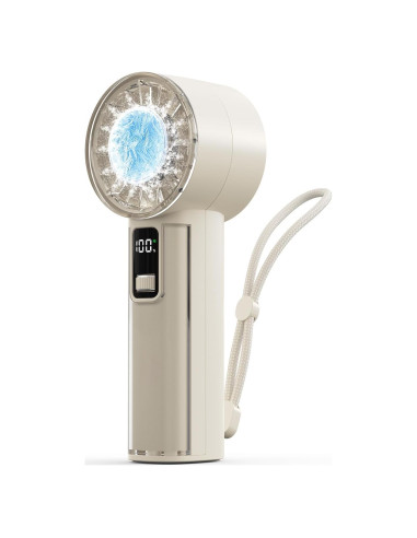 - Diseño Inteligente para Genios en Movimiento: Equipado con un cordón antirrobo que mantiene el ventilador seguro en tu muñeca, por lo que siempre está al alcance, y también una base antideslizante que ancla firmemente el ventilador en superficies planas