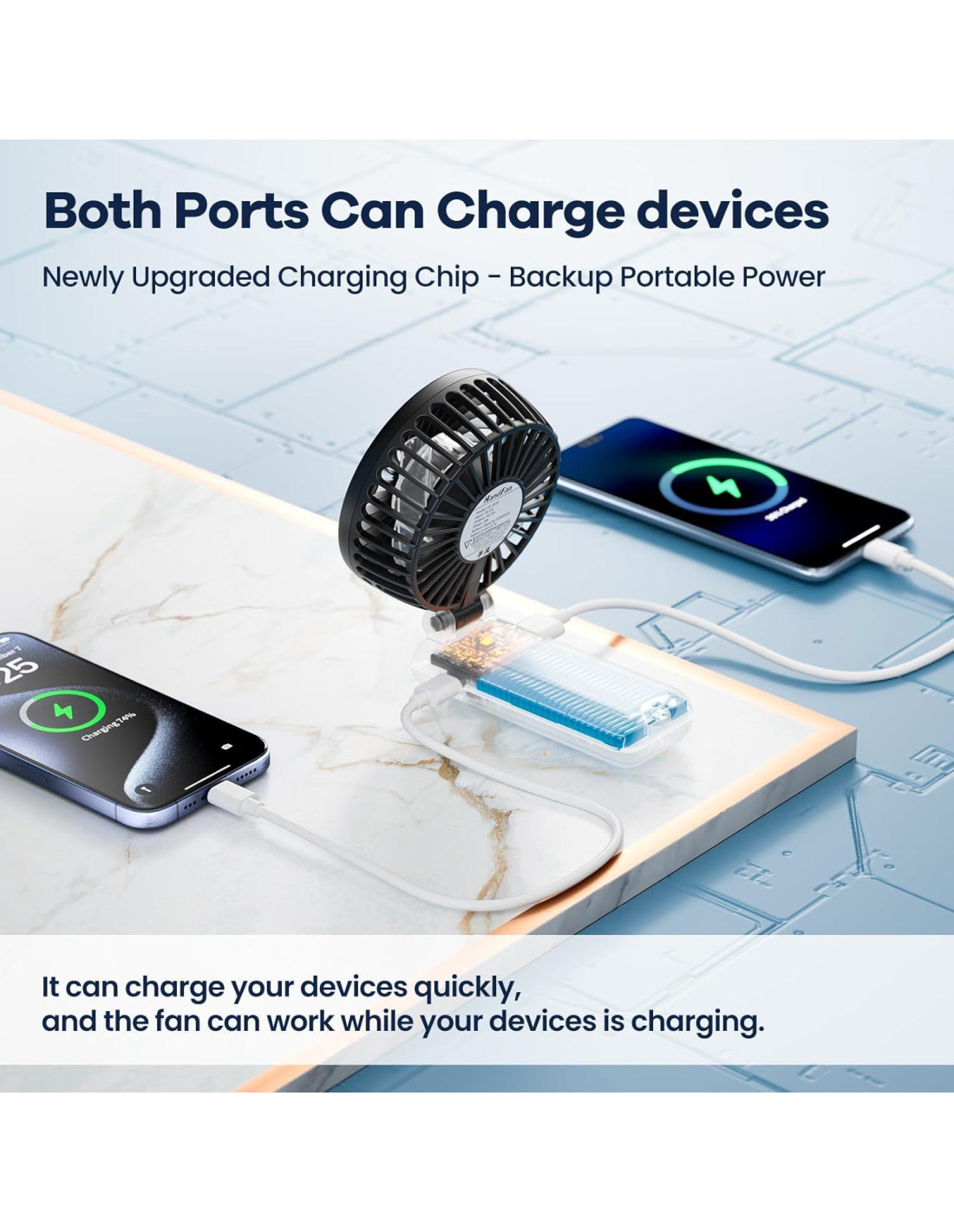 - [Cargador de Respaldo de 5200] El ventilador portátil adopta un diseño compacto plegable 180, que se puede poner fácilmente en cualquier bolso y es conveniente de llevar. También se puede usar como un cargador de respaldo para cargar sus dispositivos cuando sea necesario, y es un accesorio personal esencial para viajes y actividades al aire libre