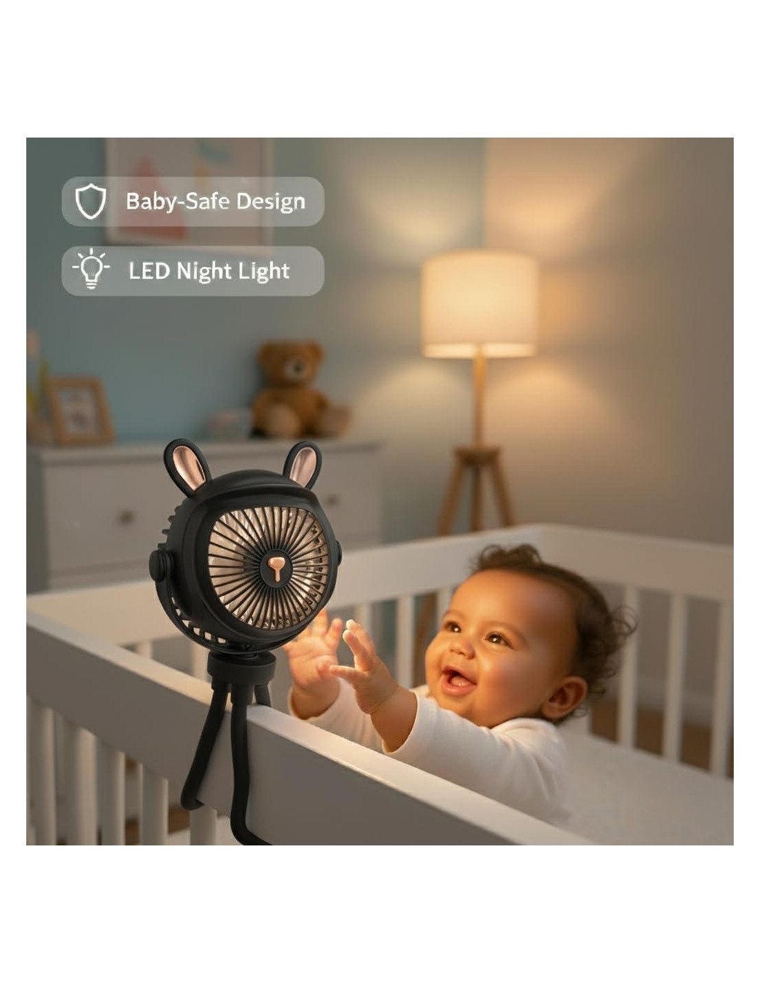 - Versátil para Viajes y Hogar - Más que un ventilador clip para cochecito, este diseño ligero se adapta a tu rutina, duplicándose como un ventilador para viajes en el asiento trasero del coche, literas, o incluso cochecitos para mascotas. Un esencial aprobado por padres para comodidad en cualquier lugar.