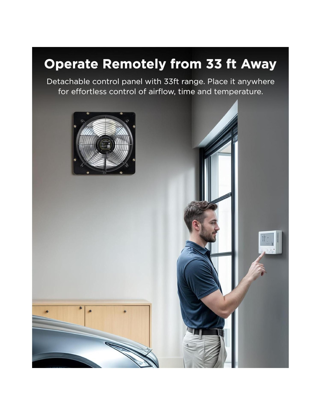 - Control remoto inalámbrico y multiunidad disponible: Toma el control total del flujo de aire, velocidad y temperatura desde hasta 10m de distancia con el panel de control remoto inalámbrico. Montalo en cualquier lugar: bancos de trabajo, paredes de garaje o pasillos para un acceso más fácil y ajustes instantáneos. (La señal no pasa a través de paredes sólidas, y las obstrucciones reducen el alcance)