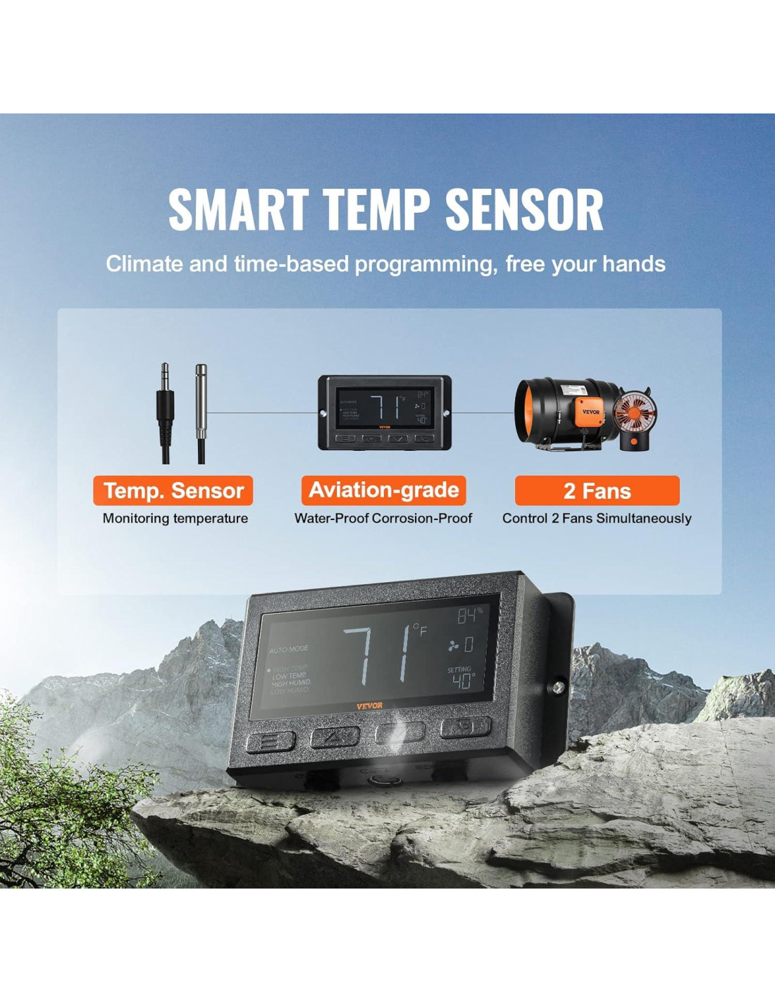 - Tómalo con Calma: El ventilador de conducto de aire en línea de VEVOR adopta un controlador inteligente. Podrás cambiar libremente entre los modos ON/OFF/TIMER/AUTO (Alta Temperatura; Baja Temperatura; Alta Humedad; Baja Humedad). Presionar los botones ARRIBA y ABAJO simultáneamente apagará el MODO AUTO. La función de alarma automática también está incluida. El controlador comienza o detiene automáticamente según la temperatura y la humedad. Nota: El controlador no ajusta la velocidad automáticamente. La velocidad solo se puede ajustar manualmente.