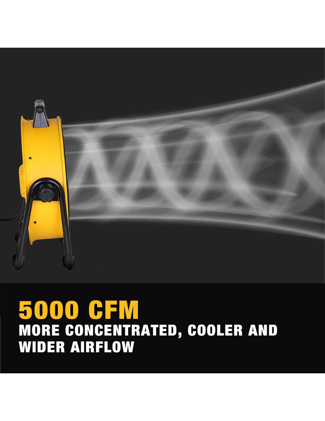 - 3 CONFIGURACIONES DE VELOCIDAD DEWALT ventilador potente cuenta con 3 velocidades para un flujo de aire personalizado y funciona a 5000 CFM y 1400 RPM (máx). Con opciones de bajo, medio y alto volumen, tienes la flexibilidad de elegir el flujo de aire y optimizar la circulación del aire en tu lugar de trabajo.