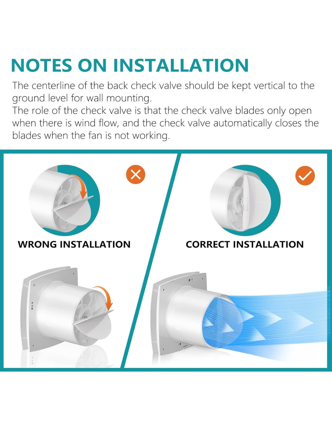 - Ventilación y Deshumidificación - 7 aspas del ventilador y un motor lubricado permanentemente proporcionan ventilación eficiente y silenciosa. El compensador de retroceso previene la reversión del viento. Ideal para eliminar humos de cocina y humedad de lavandería, y es adecuado para talleres y salas de recreo.
