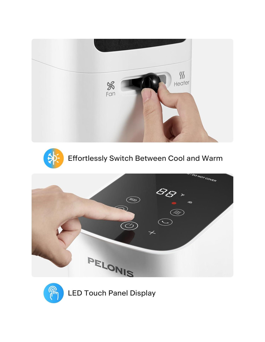 - Fácil de Usar: Cambia entre Calor y Frío con el toque de un botón. El control remoto multifuncional te permite operar todas las funciones del ventilador y calefactor sin tener que levantarte. No requiere herramientas para el ensamblaje.