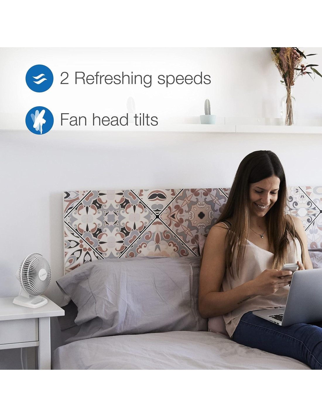 El ventilador personal silencioso No. 2002W de 6 pulgadas (15,24 cm) de Lasko se inclina y pivota para dirigir el flujo de aire donde se necesita para mayor comodidad. Fabricado en EE. UU. con piezas nacionales e importadas. Lasko; más de 100 años de calidad, comodidad y durabilidad.