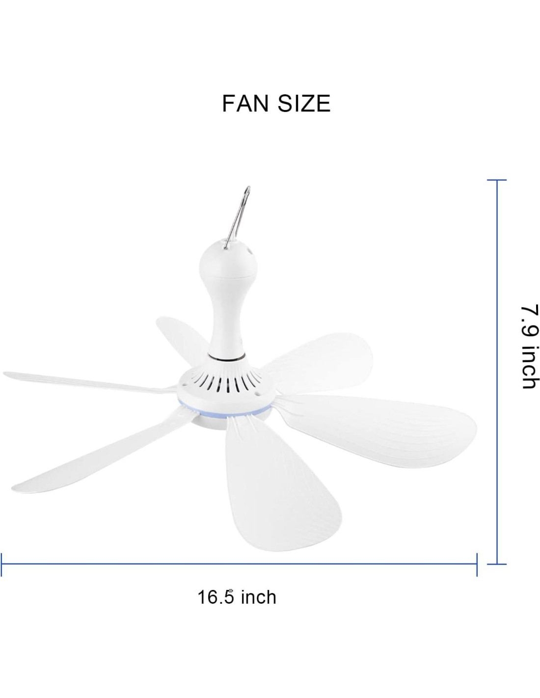 - VENTILADOR COLGANTE MINI: El diámetro del ventilador cuando está ensamblado es de 42 cm (16.5 pulgadas), mini y ligero, ideal para enfriar espacios pequeños y estrechos. Ventilador de techo portátil, ocupa muy poco espacio en la mochila y en el cuarto de almacenamiento