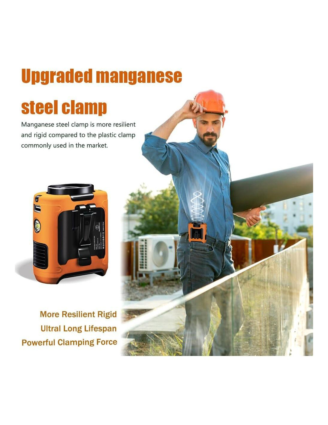 - [Clip de Acero de Manganeso Mejorado para Mayor Agarre y Durabilidad] : El acero de manganeso, en comparación con el acero al carbono ordinario, ofrece no solo mayor resistencia sino también mayor tenacidad. La mayoría de los ventiladores en el mercado cuentan con clips de plástico, que no están al mismo nivel que nuestro producto. El clip de acero de manganeso aborda eficazmente problemas comunes en otros ventiladores, como la insuficiente fuerza de agarre, la rotura frágil y el envejecimiento del plástico