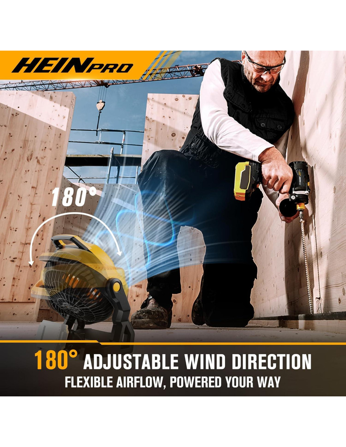- [Hasta 650 CFM] Los ventiladores de sitio de trabajo inalámbricos HEINPRO utilizan motores de alambre de cobre para extender efectivamente la vida útil. Volumen de aire de hasta 650 CFM y están equipados con funciones de velocidad variable infinitas para satisfacer sus necesidades en diferentes escenarios de uso.