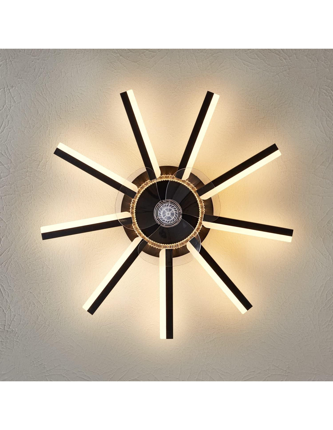 - Características especiales: Modos de 3 Colores, Ventilador de Techo Geométrico con Luz, Control Remoto, Ventilador de Techo de 6 Velocidades, Ventilador Artístico con Luz
