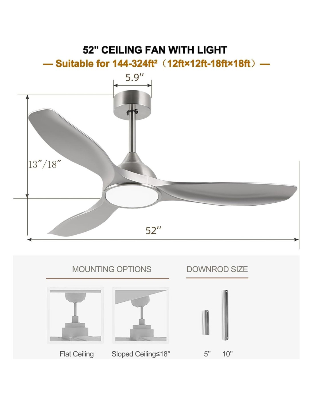 - Amplia Aplicación: Este elegante ventilador de techo es muy fácil de instalar gracias al manual profesional y las instrucciones en video. Diámetro de 52 pulgadas (132.08 cm), 2 varillas de extensión: 5 pulgadas (12.7 cm) y 10 pulgadas (25.4 cm), para diferentes alturas de techo. Perfecto para tus dormitorios, salas de estar, comedores, oficinas.