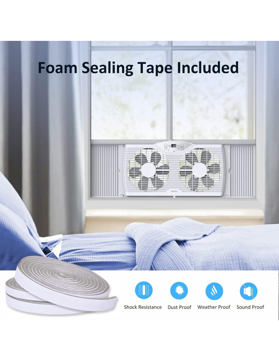 - Cinta de Sellado de Espuma: Obtén un rendimiento aún mejor de tu ventilador de ventana con la Cinta de Sellado de Espuma complementaria. Esta tira de espuma está diseñada para proporcionar un sellado ajustado y seguro entre el ventilador y el marco de la ventana, asegurando la máxima eficiencia de flujo de aire y minimizando cualquier fuga de aire.