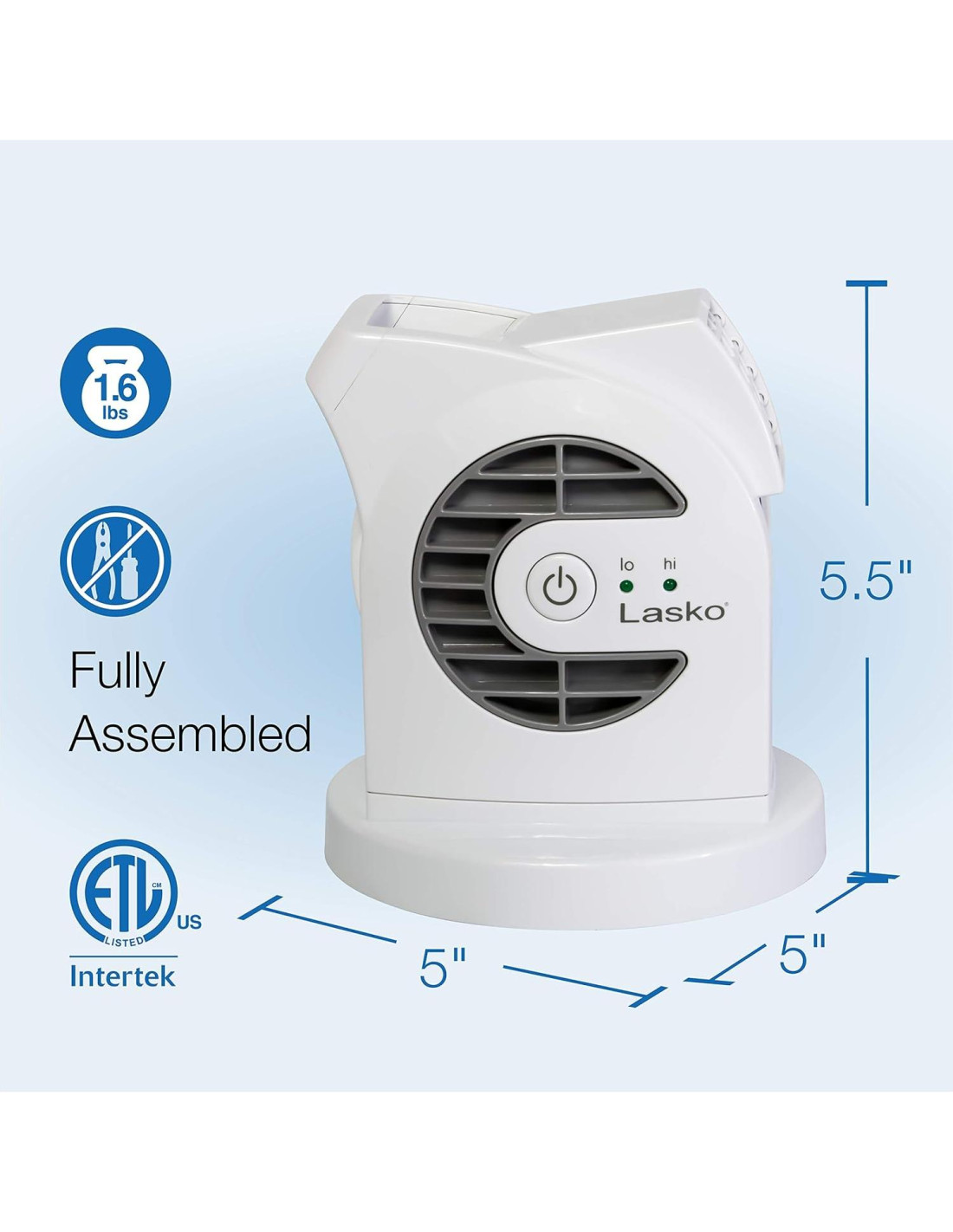 El Ventilador Mini Blower MyCool de Lasko se conecta directamente a una computadora y viene con un enchufe de pared de adaptador de CA, por lo que es conveniente alimentarlo sin importar dónde lo necesite. La cabeza del ventilador oscilante significa que puede apuntarlo más alto cuando trabaja en su escritorio de pie o más bajo para dirigir el flujo de aire hacia la cama desde una mesa de noche. Este ventilador compacto es perfecto para viajar porque es ligero, pequeño y versátil. Cuenta con 2 velocidades silenciosas y un asa de transporte incorporada. Es ideal para crear brisas frescas en oficinas en casa, residencias, dormitorios y cualquier otro espacio personal para que se sienta más cómodo mientras trabaja y descansa. Listado por ETL.