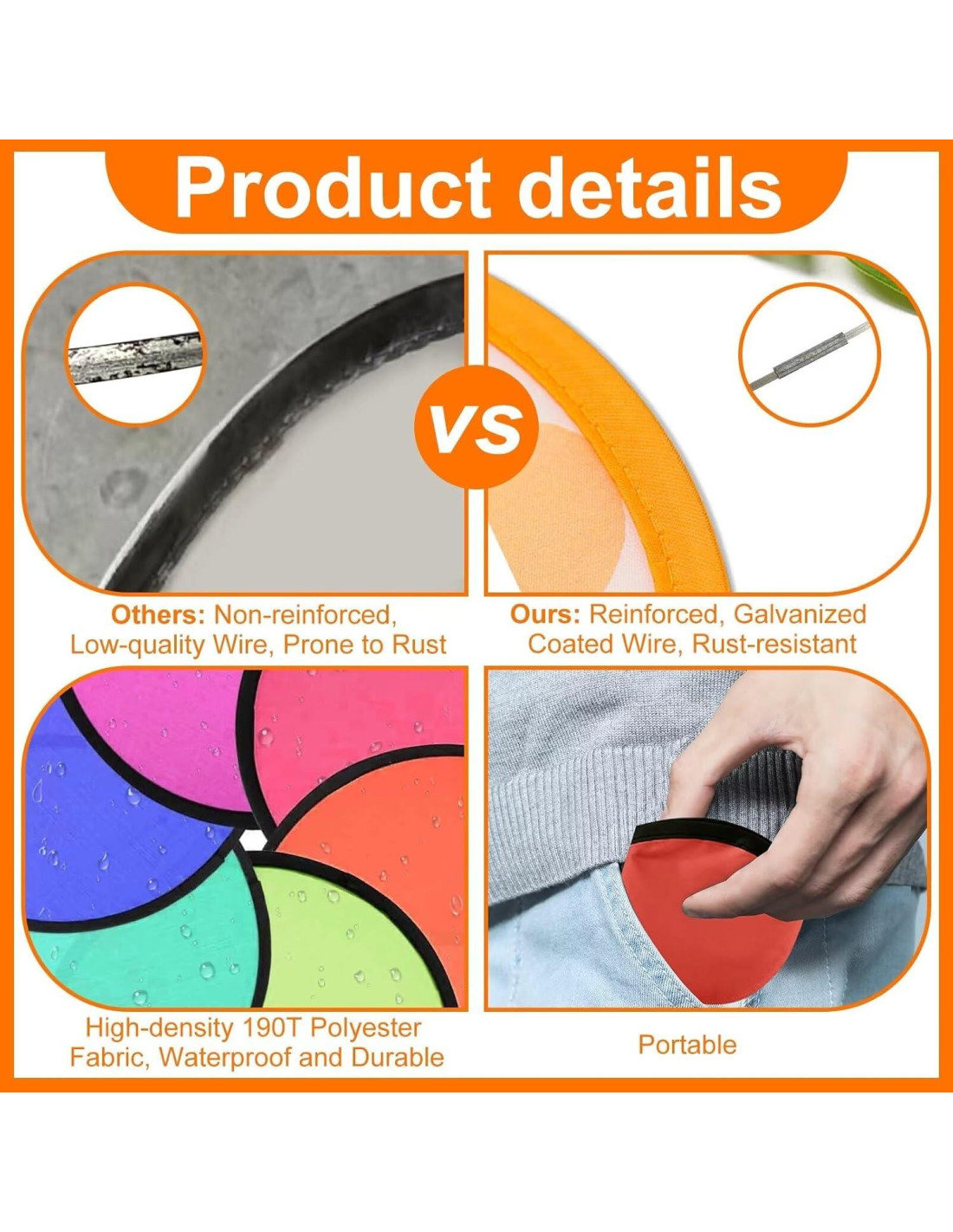 - Conjunto de Ventiladores de Disco Premium: El Disco Volador está hecho de tela de poliéster 190T ligera, impermeable, flexible y duradera con anillos de acero galvanizado de alta calidad; Se puede plegar repetidamente y es perfecto para actividades al aire libre, es fácil de lanzar y atrapar sin causar abrasiones fácilmente