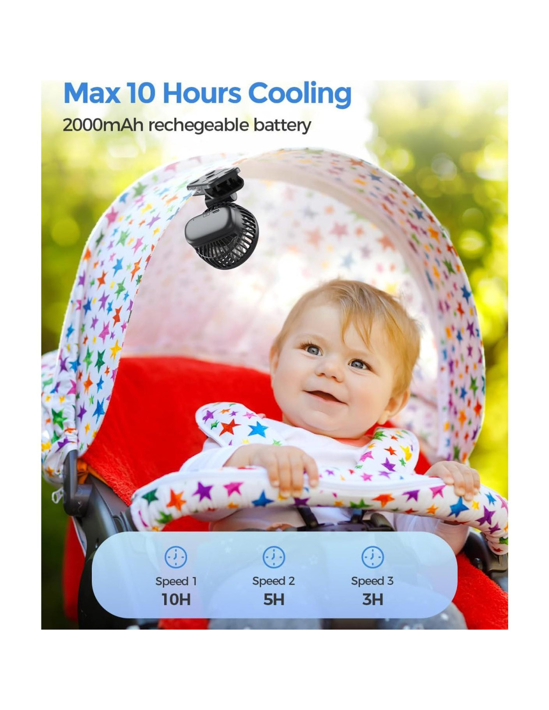 - 3 Velocidades y Ajustable 360 - ¡No dejes que su tamaño compacto te engañe! Este ventilador para bebés ofrece un fuerte flujo de aire con una velocidad máxima de 4.57 m/s, más potente que los ventiladores de clip del mismo tamaño y opera en silencio. La cabeza ajustable puede rotar 360 horizontalmente y inclinarse 180 verticalmente para una cobertura amplia y enfriamiento personalizado.