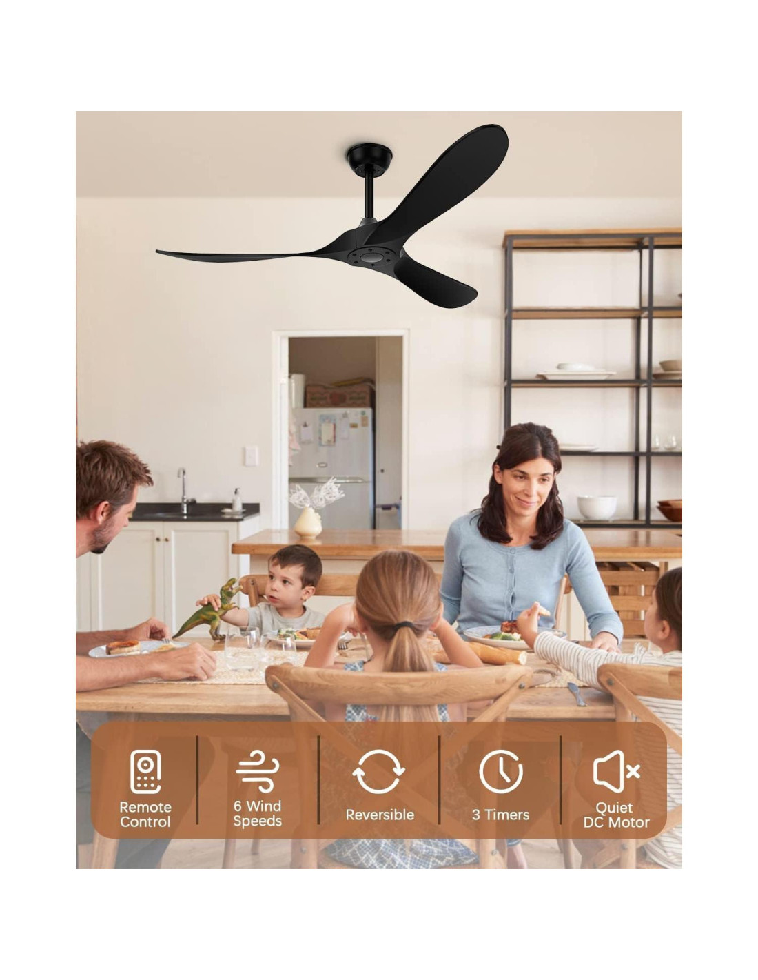 - Diseño de 132 cm para Uso Interior y Exterior: Este ventilador de techo de 132 cm está fabricado con 3 aspas de plástico ABS negro de alta calidad, lo que lo convierte en una adición elegante y funcional a cualquier espacio. Diseñado como un ventilador de techo exterior sin luz, es resistente a la humedad y construido para soportar condiciones húmedas, lo que lo hace ideal para patios, cocinas, granjas y más. El acabado negro del ventilador de techo añade un toque moderno mientras asegura durabilidad tanto para entornos interiores como exteriores.