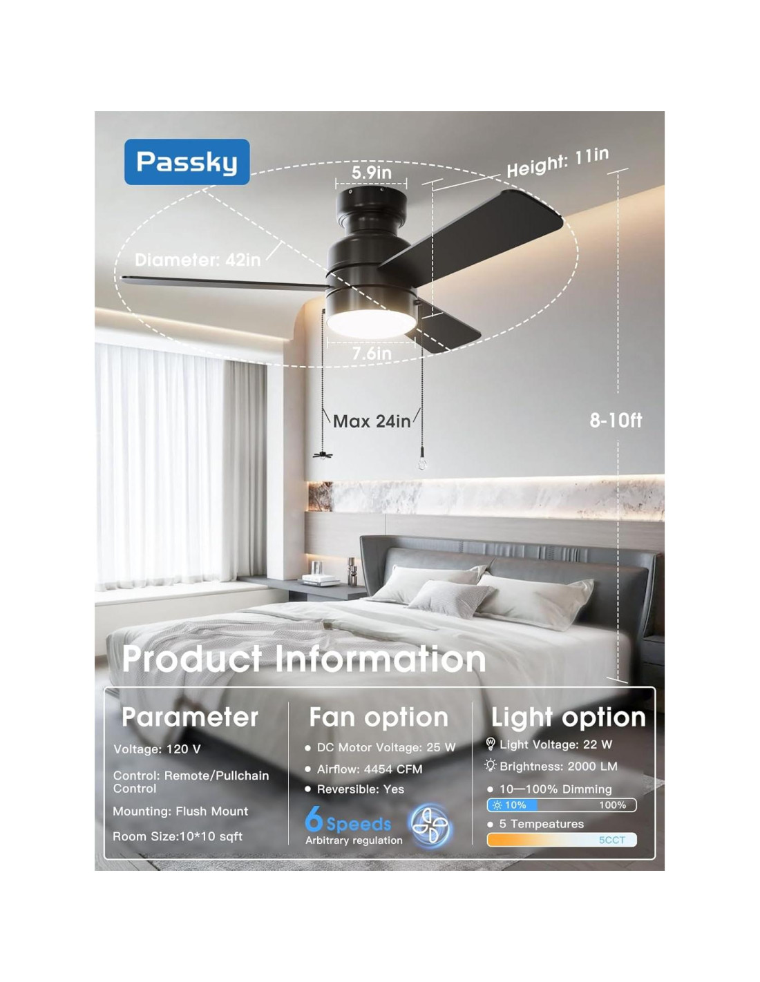- Ventilador de Techo con Luz: Ventilador de techo elegante Passky con luz, pasa la brisa, ilumina tu cielo. Nuestro ventilador de techo pequeño de 42 pulgadas con control remoto tiene una calificación de eficiencia energética A, lo que puede evitar el 80% de la pérdida de electricidad en comparación con ventiladores tradicionales. Mientras te brinda frescura y comodidad, queremos que se ajuste perfectamente a la decoración de tu hogar!