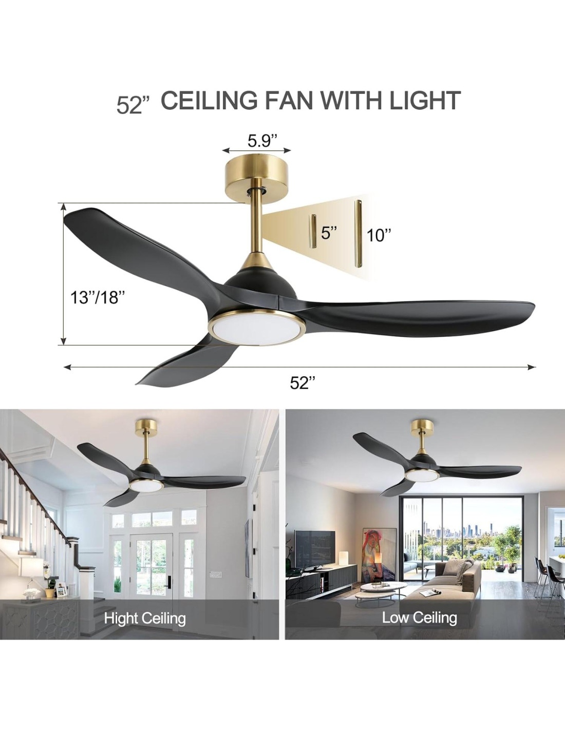 - Motor DC Silencioso: El ventilador de techo negro y dorado con luz cuenta con un motor DC ultra potente que lo hace un 75% más eficiente energéticamente que un motor AC tradicional. Super silencioso, gran movimiento de aire.