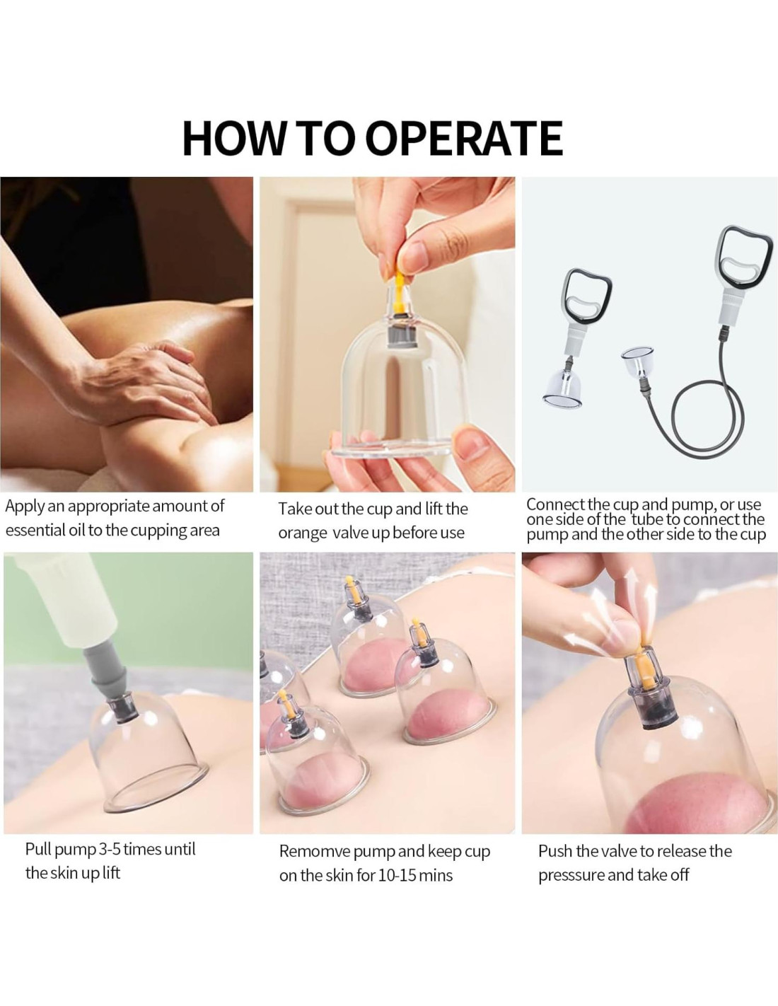 - [ Nota Importante ] Limpie bien la piel y retire el vello corporal antes de usar las ventosas. El vello corporal excesivo resultará en una succión débil. No se bañe ni nade durante 8 horas después de usar las ventosas y manténgase abrigado. Para cualquier pregunta sobre este artículo, no dude en contactarnos.
