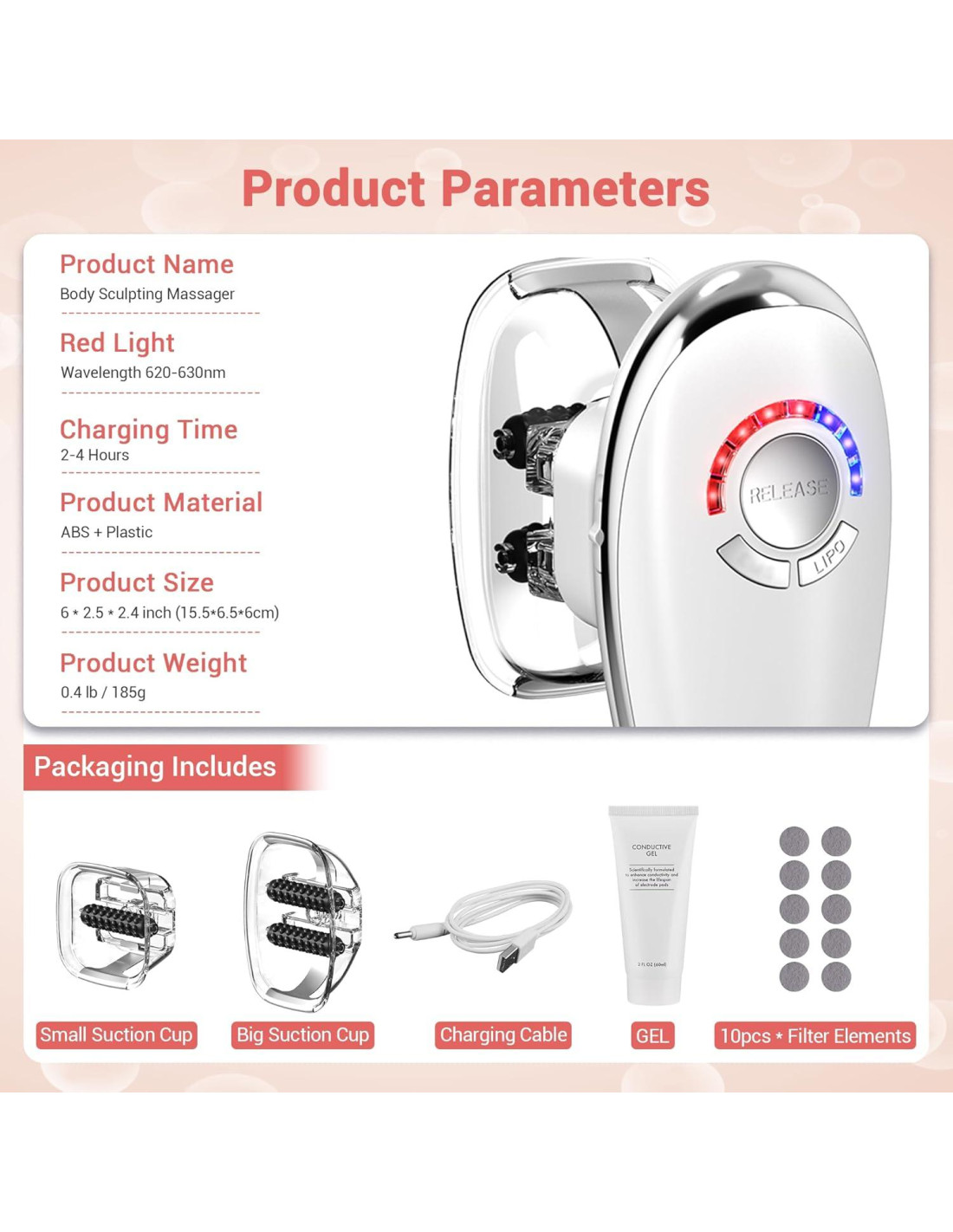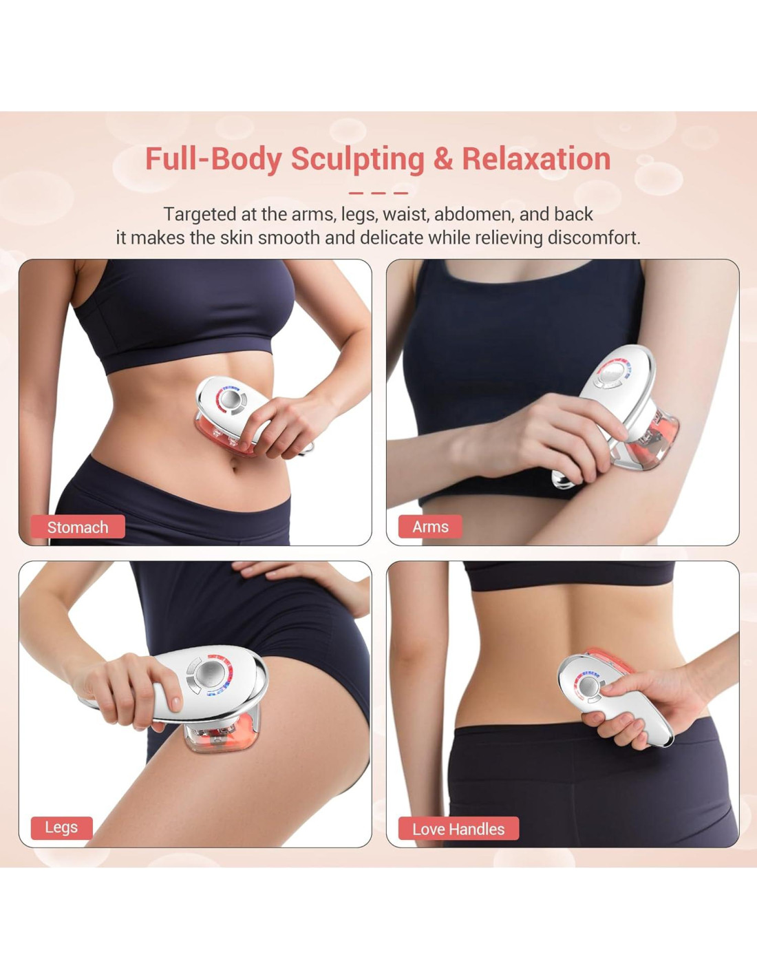 - [Masajeador Profesional para Esculpido Corporal] : Diga adiós a múltiples herramientas - esta máquina de esculpido corporal todo en uno integra masaje, ventosas y terapia de luz roja para atacar la celulitis rebelde, desvanecer estrías y suavizar texturas irregulares. Perfecto para muslos, abdomen, brazos, piernas e incluso la cara, ofreciendo resultados de salón en casa