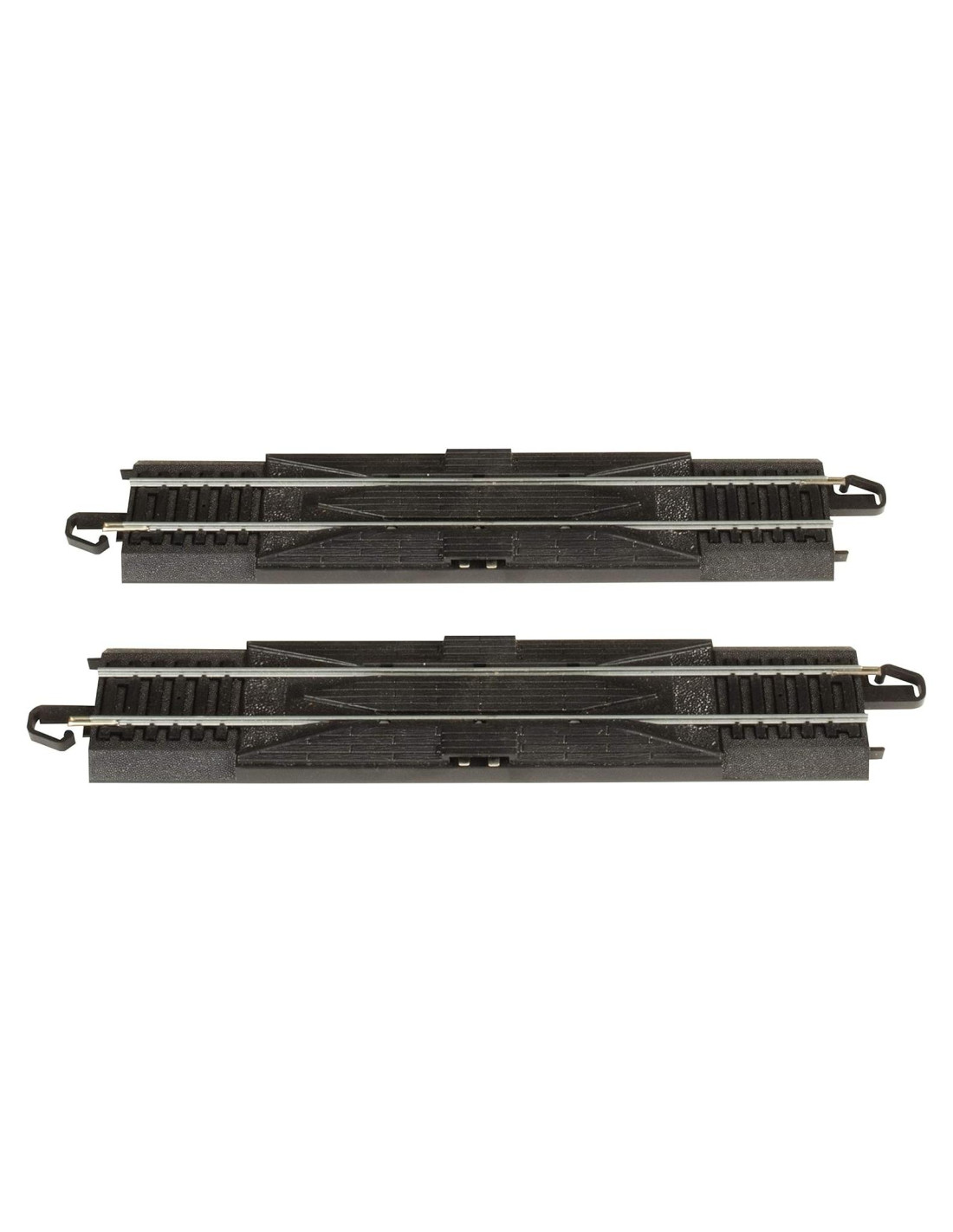 Descripción del producto Snap-Fit E-Z TRACK 23 cm RERAILER RECTO (2/carta) - Riel de ALEACIÓN DE ACERO con base negra - Escala HO. El exclusivo sistema E-Z Track de Bachmann hace que la instalación sea rápida, fácil y divertida. E-Z Track está diseñado para encajar y mantenerse unido en pisos, mesas y alfombras. Este producto cuenta con riel de aleación de acero con base negra. El rerailer está diseñado para corregir descarrilamientos que a veces ocurren durante las operaciones normales del ferrocarril. También se puede usar para ayudar a alinear correctamente las ruedas en la vía al ensamblar un tren para su operación. Si desea usar el rerailer para ayudar a colocar vagones en la vía, debe instalarlo de manera que sea fácilmente accesible. De lo contrario, debe instalarse después de una sección difícil de la vía (desvío, cruce, curva en 'S', etc.) donde pueden ocurrir descarrilamientos. También está disponible en el sistema E-Z Track un Rerailer Terminal Recto de 23 cm (Aleación de Acero) si necesita un rerailer y una conexión de energía. Del fabricante El exclusivo sistema E-Z Track de Bachmann hace que la instalación sea rápida, fácil y divertida. Riel de aleación de acero. Base negra. Sistema E-Z Track - Se encaja, se mantiene unido en pisos, mesas y alfombras.