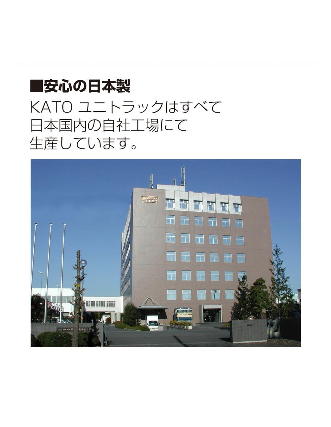 - KATO es una empresa japonesa que planea, fabrica y vende modelos de ferrocarril. Es uno de los principales fabricantes en vender modelos de ferrocarril. KATO se adhiere a su propia producción y desarrolla muchos modelos no solo en Japón sino también en el extranjero. Se están realizando diversos desarrollos tecnológicos para hacer modelos que sean más realistas, y son muy apreciados en el extranjero.