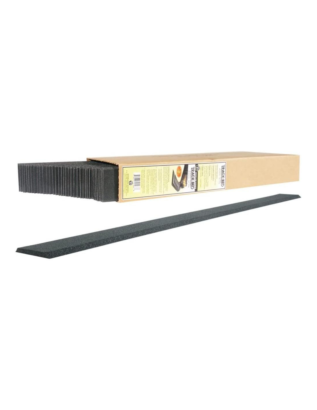 La Base de Vías de Woodland Scenics ofrece estas ventajas: Operación Más Silenciosa (Material que Aísla el Sonido), Operación Más Suave (Amortigua Vibraciones), Más Fácil de Usar (Se Adhiere con Tack o Pegamento, Flexible, No Necesita Remojo, Compatible con Corcho, No Se Secará ni Desmenuzará), y un Mejor Valor (Mayor Calidad...Menor Costo). Este Paquete a Granel de tiras de Base de Vías a escala HO tiene un grosor de 5mm x 61 centímetros de largo.