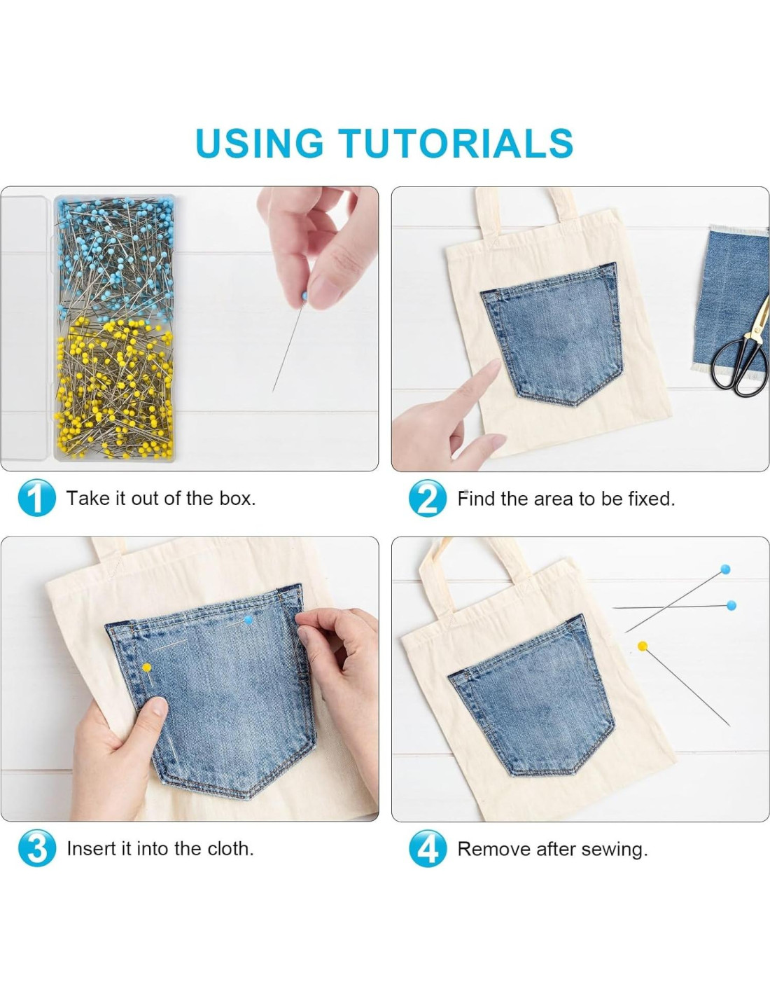 - [Cantidad y Color] El set de 500Pcs de alfileres rectos incluye 2 colores diferentes; 250Pcs alfileres de cabeza de bola de vidrio amarillos y 250Pcs alfileres de cabeza de bola de vidrio azules, Con una caja de plástico transparente, fácil de usar y almacenar.