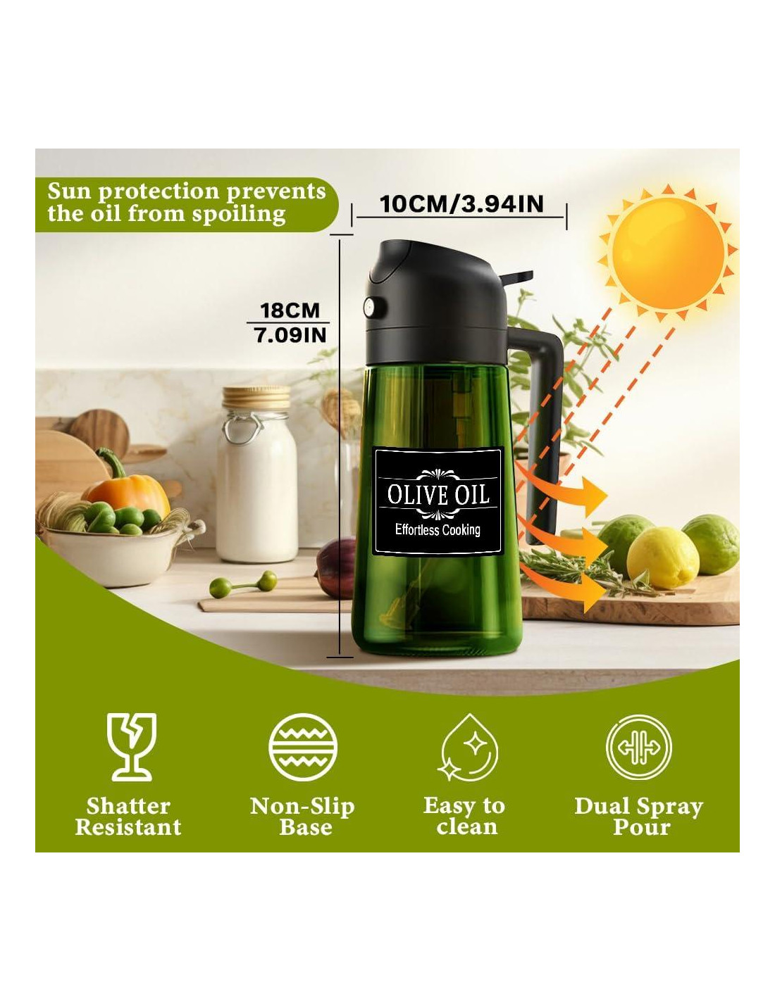 - Control de aceite científico-Ayudante saludable: Un solo rociado de aproximadamente 0.5g de aceite, ayuda al control de aceite para fitness y dieta saludable, evita el uso excesivo de aceite. La botella de gran capacidad reduce el reabastecimiento frecuente, mejora la eficiencia de cocción y controla mejor la ingesta de grasa dietética.