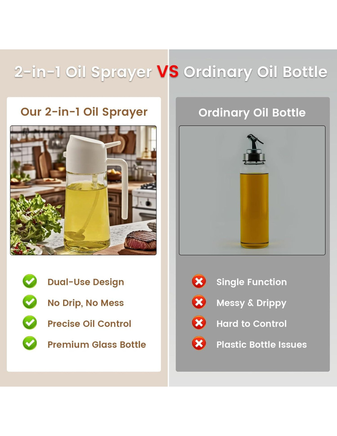 - Rociador y Dispensador de Aceite 2 en 1: Con el dispensador de aceite y rociador 2 en 1, obtienes la versatilidad de rociar y verter. Ya sea que necesites una ligera bruma de aceite o un verter más grande, este dispensador de aceite para la cocina lo hace todo. Esta funcionalidad dual lo hace perfecto para aplicaciones de rociador de aceite de oliva para cocinar, dispensador de aceite de cocina e incluso aplicaciones de rociador de aceite misto.