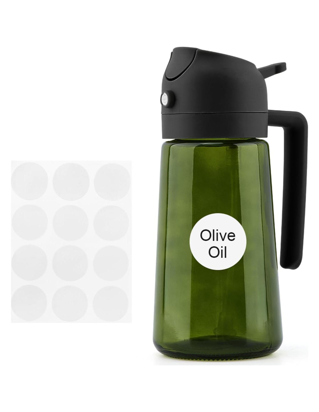 - [CONTENIDO DEL PAQUETE] Recibirá 1pc de botella de spray de aceite oscuro bloqueador de luz de 470ml (2 colores para elegir: negro/verde) y 1 hoja de etiquetas redondas blancas de PVC (12pcs), suficientes etiquetas para la organización y marcado de la cocina.