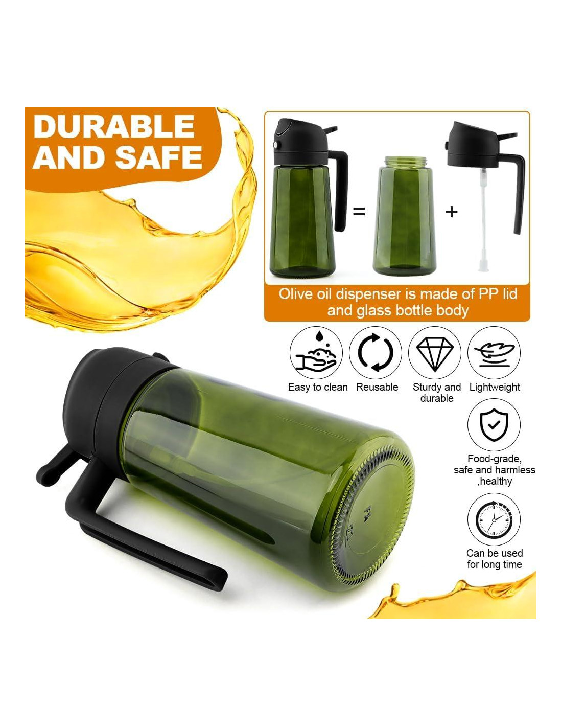 - [DURADERO Y SEGURO] El dispensador de aceite de oliva está hecho de tapa de PP y cuerpo de botella de vidrio, grado alimenticio, seguro e inofensivo, saludable, ligero, resistente y duradero, reutilizable, fácil de limpiar y puede usarse por mucho tiempo.