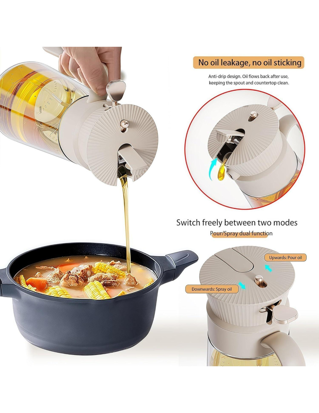 - [Dispensador de Aceite y Pulverizador 2 en 1] Esta versátil botella dispensadora de aceite de oliva combina los beneficios de rociar y verter, sirviendo como botella pulverizadora de aceite de oliva y pulverizador de aceite para cocinar. Cambia sin problemas entre verter aceite y rociar una fina niebla con un simple ajuste, el dispensador de aceite para cocinar es de 550 ml, proporciona un suministro amplio para tu creación culinaria, ahorrando espacio y eliminando el desorden en la cocina.