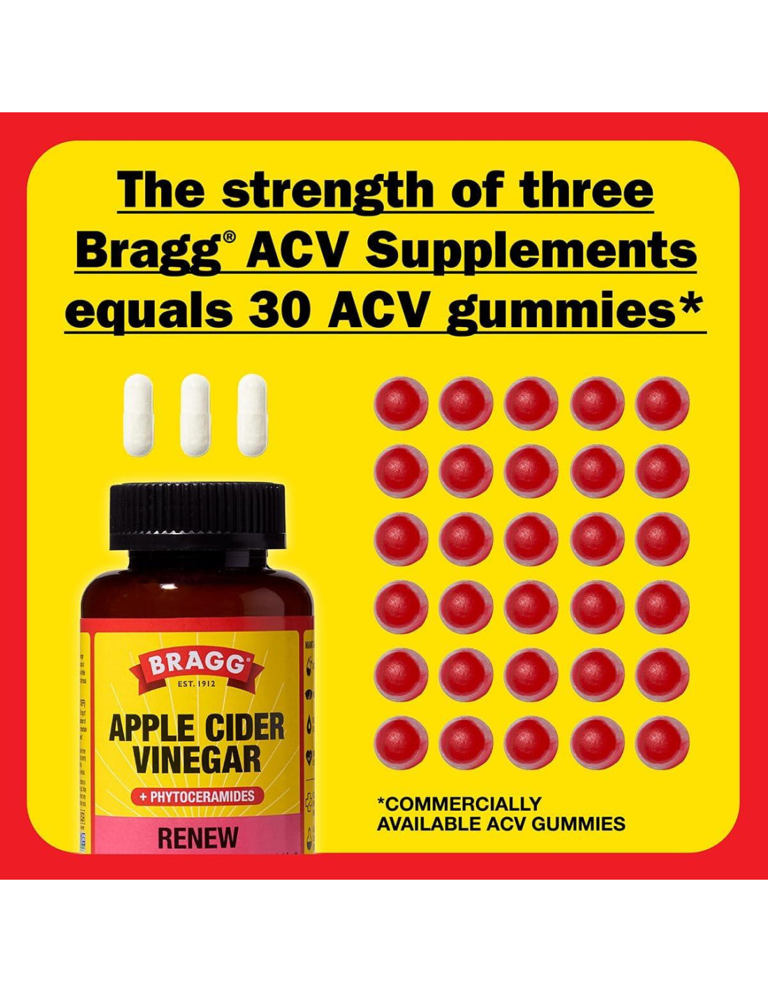 - COMPARAR CON GOMITAS DE VINAGRE DE SIDRA DE MANZANA: El contenido de ácido acético en 3 cápsulas de vinagre de sidra de manzana Bragg es el mismo que en 30 gomitas de vinagre de sidra de manzana; Sin azúcar añadido, en contraste con la mayoría de las gomitas de vinagre de sidra de manzana comercialmente disponibles