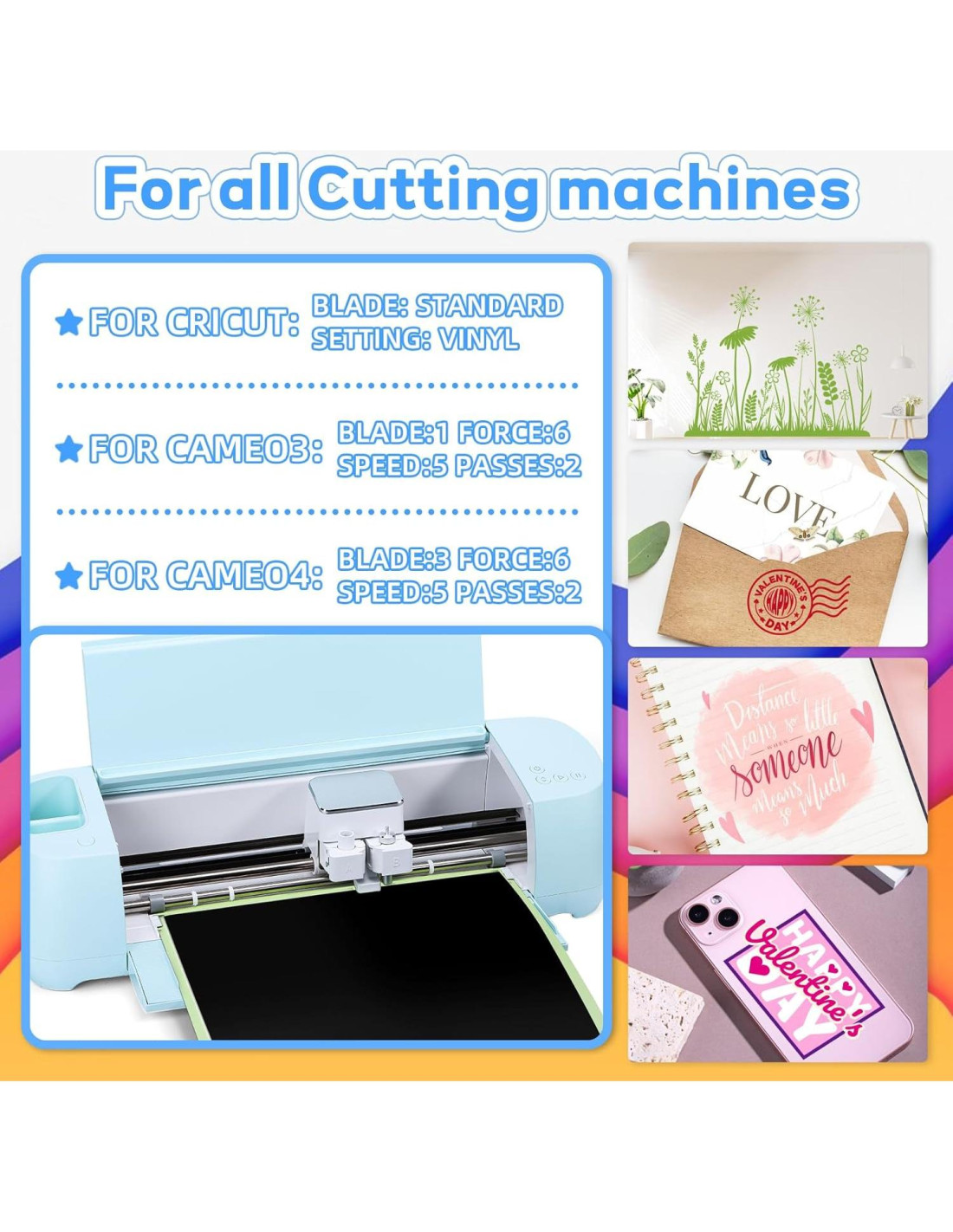 - Hojas de Vinilo de Corte Suave - Nuestras hojas se integran sin problemas con máquinas de corte estándar para cortes limpios. El respaldo de papel es óptimo para su uso con alfombrillas de menor adherencia, asegurando un proceso de corte consistente y confiable. Un corte de prueba refina la configuración de tu máquina